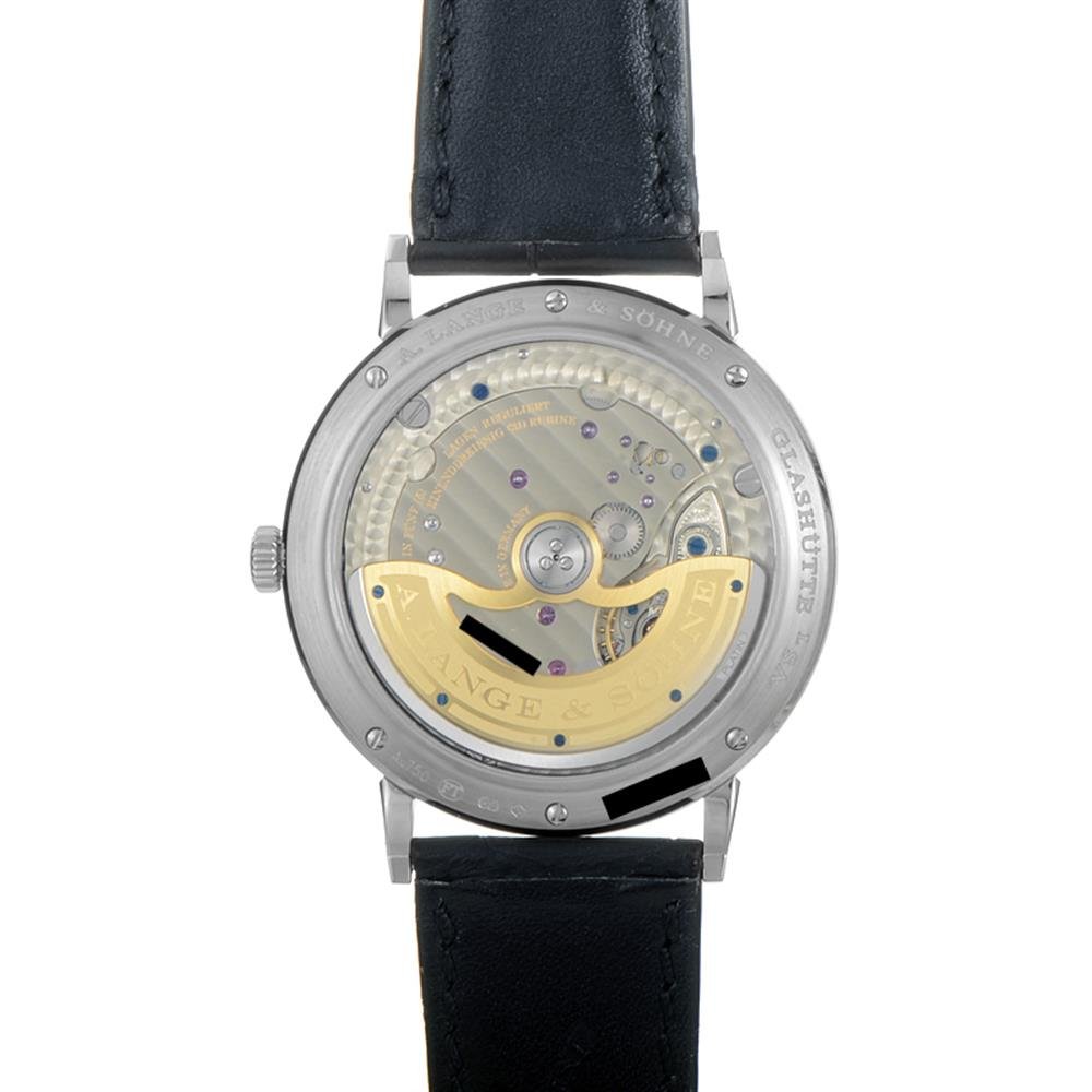 A. Lange & sohne Saxonia – Reloj automático, oro blanco 18 K redondo Case (38.5 mm Diámetro x 7,8 mm de grosor) con carcasa trasera transparente, cosido a mano con resistencia de cocodrilo con un cierre de oro blanco, plata dominio guilloched con asignar rodio índice marcadores y las manos, liliputiense segundos subdial en 6 o ‘clock, Caliber l086.1 carga bono con 72 hora potencia Reserva. La funda combina tecnología avanzada de horological automático con llamativo entretenimiento estético. Su carga a mano bono, meticulosamente hasta el último detalle, está dotado con todos los elementos típicos de Lange watchmaking ARTISTRY.